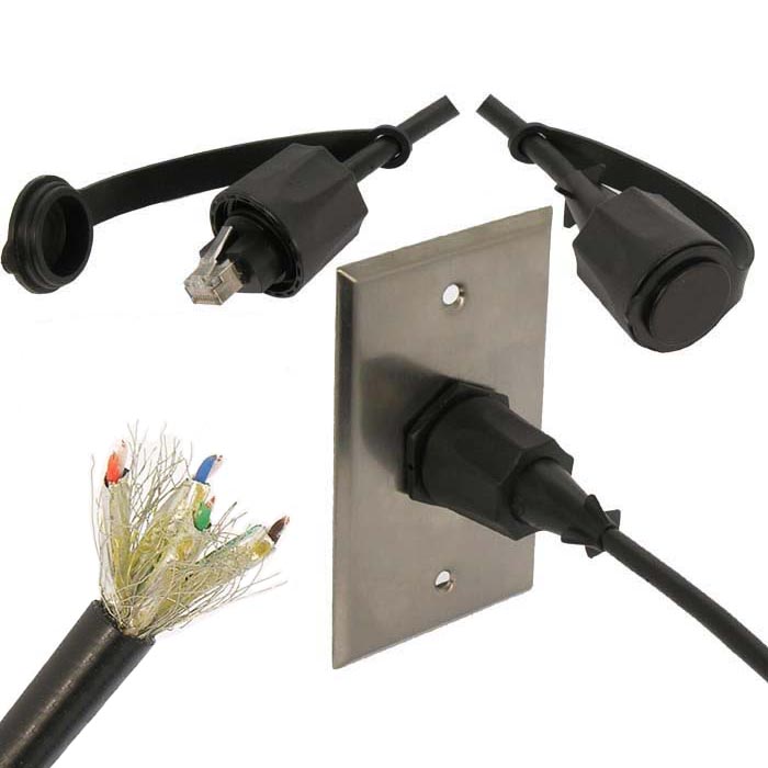 Cable cat. 6 de parche para exteriores SSTP para entornos industriales hostiles, como la automatización de fábricas o en exteriores, donde el cable Ethernet debe pasar por lugares húmedos o no limpios. También es ideal para la instalación de redes residenciales al aire libre, como un patio. Ambos enchufes RJ45 tienen tapas herméticas que se conectan a los conectores RJ45 estancos de montaje en panel.