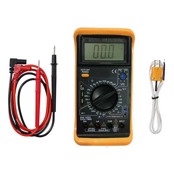 El Multímetro Digital es la solución ideal para comprobar el flujo de corriente así como el voltaje de dispositivos electrónicos. Este mide voltaje y corriente CA/CC, resistencia, capacidad, frecuencia, temperatura, diodo, prueba de continuidad y prueba de transistores.